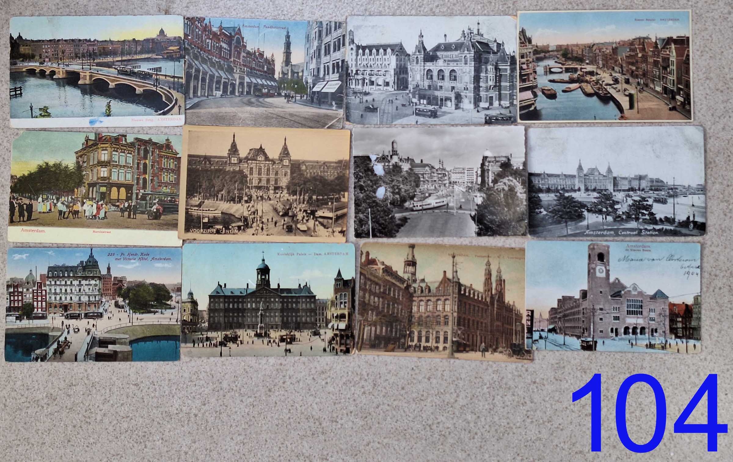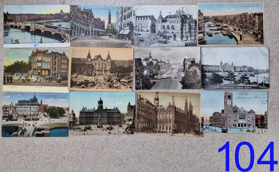 | 104 | Ansichtkaarten Amsterdam, 12 stuks. Klik hier voor vergroting. | € 5 |