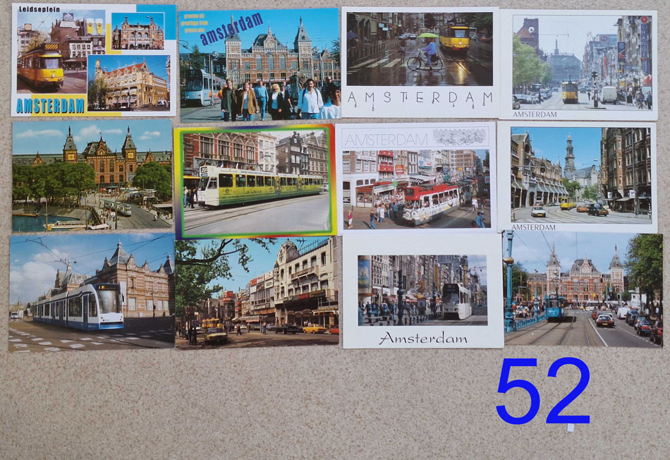 | 52 | 12 Ansichtkaarten tram Amsterdam na 1970. Klik hier voor vergroting. | € 6 |
