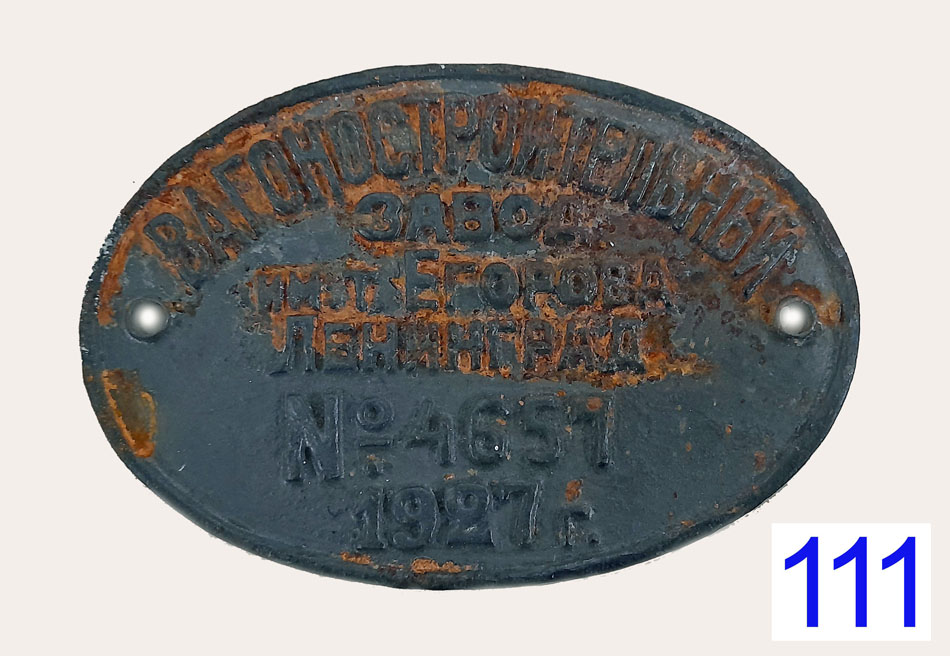 | 111 | Fabrieksplaat wagonfabriek I.E. Egorova Leningrad, 1927