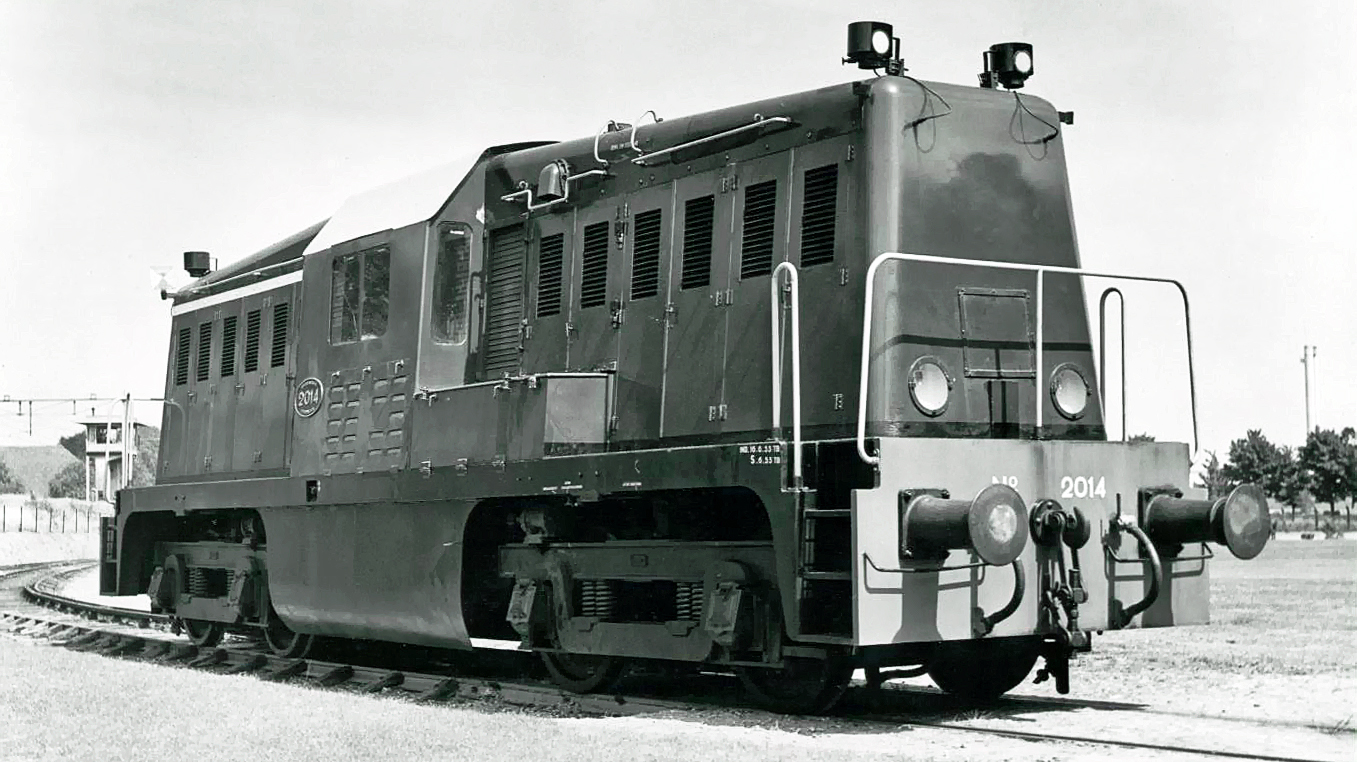 NS-loc 2014 voorzien van nieuwe motoren op het fabrieksterrein van Thomassen. Foto W.K. Steffen, 1953.