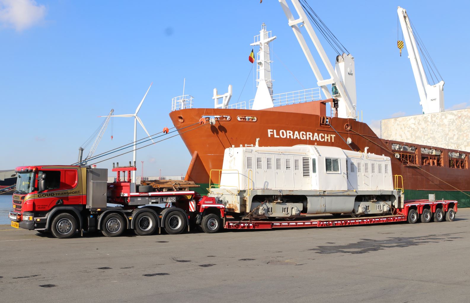 Aankomst van de Whitcomb diesellocomotief in Antwerpen, 7 november 2017.