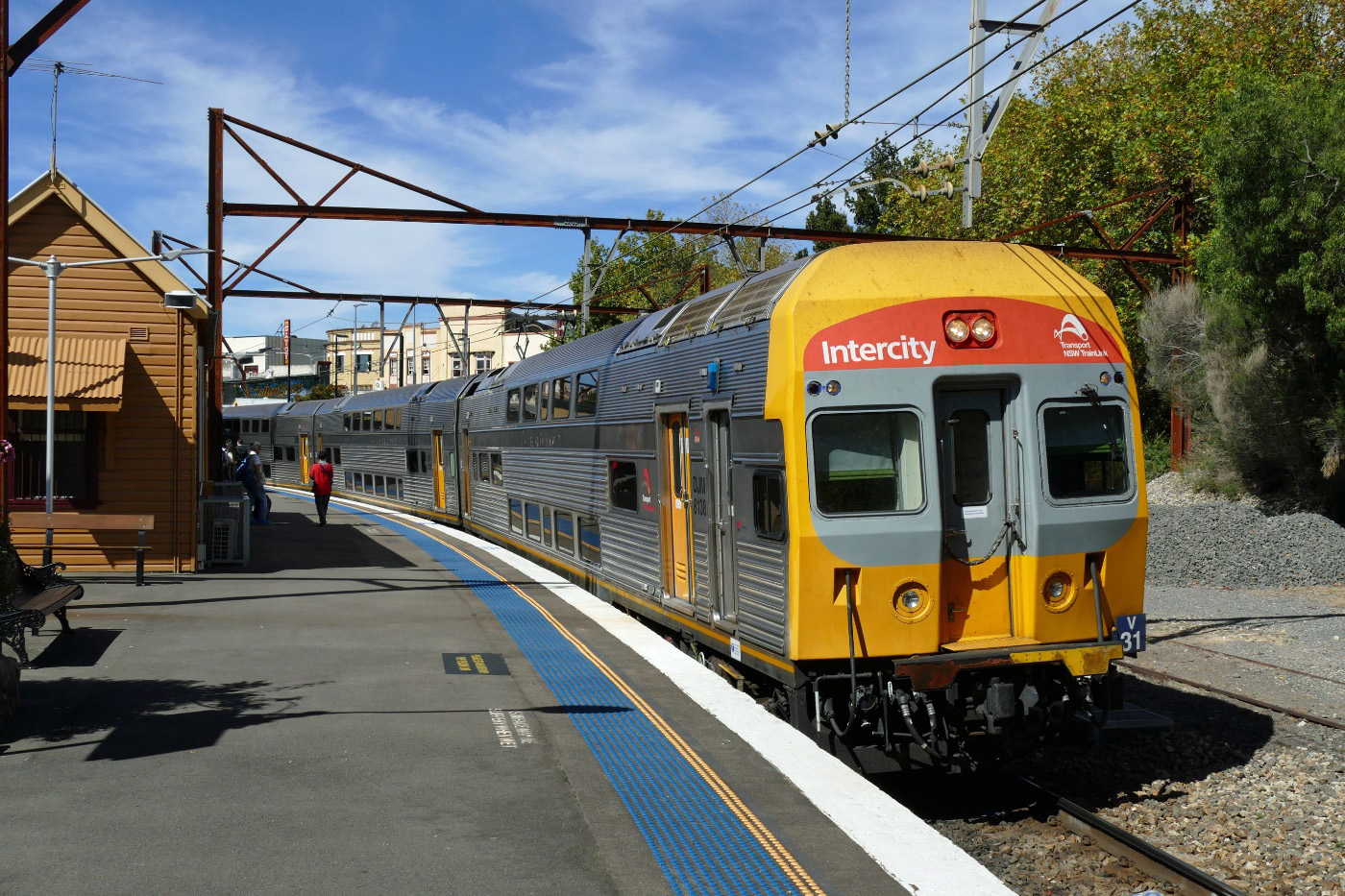 Intercitytrein uit Sydney na aankomst in Katoomba, 11 april 2016. Foto: Paul Muré.