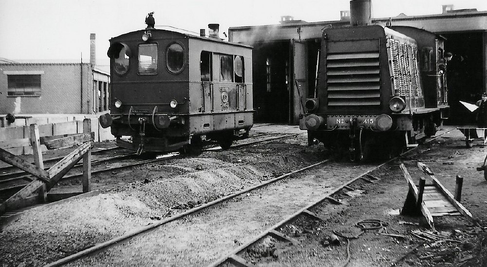Het locdepot van de WSM in Loosduinen met een Hohenzollern en een gehuurde NS-dieselloc (serie 400). Foto: Hans van Lith.