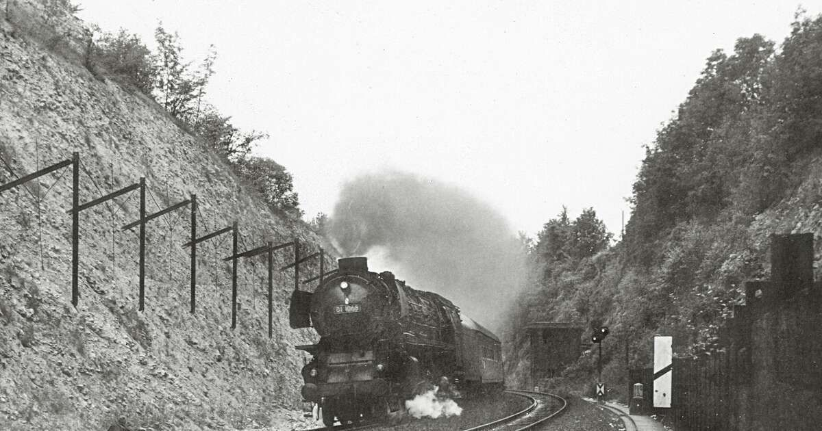 DB 01 1068 in de ingraving kort voor de tunnel bij Lengerich, 1964. Foto: Ton Pruissen.