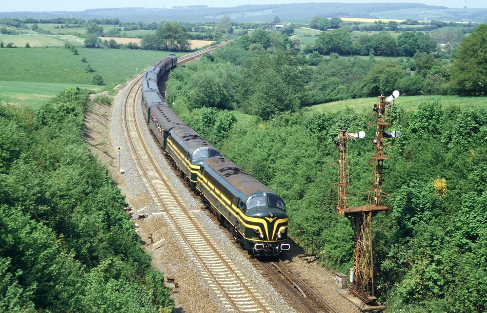 Op 14 mei 1988 organiseerde het TSP de afscheidsrit van de diesels van de reeks 204 (reeks 54). Dit was een fotorit van Brussel Noord naar Heer Agimont. Van daaruit terug naar Dinant en dan over de Athus-Meuse-lijn na Bertrix. Vanaf Bertrix weer terug naar Brussel Noord. Locs 5404 + 5403 van de NMBS komen aan in Voneche (het station ligt net na de tunnel waar de trein nu inrijdt), met trein Z 18473 van Dinant naar Bertrix.