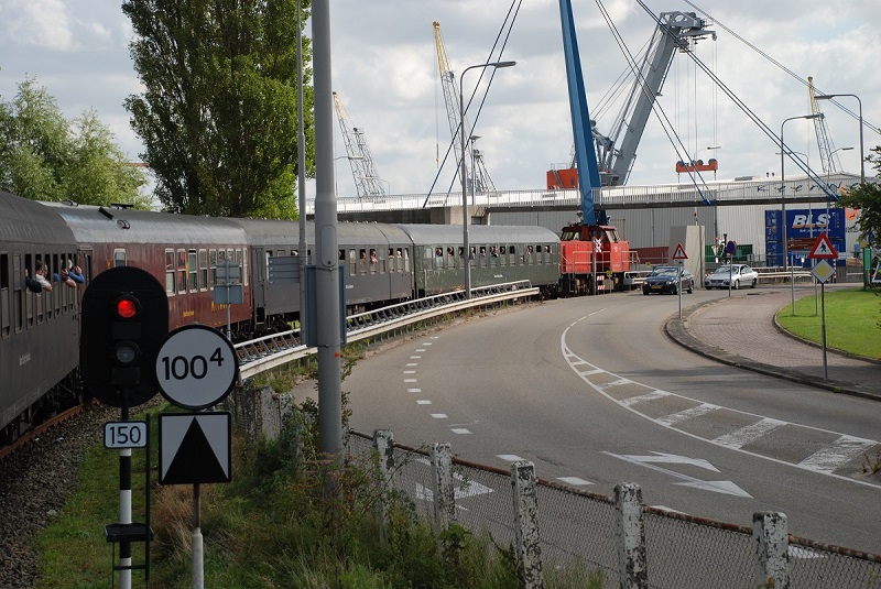 Een vergelijkbare rit – maar dan met een 6400 en rijtuigen van de SSN – werd door Mercia Charters georganiseerd op 27 september 2014. Hier de doorkomst in de Eemshaven. Foto: Ronald Bokhove.