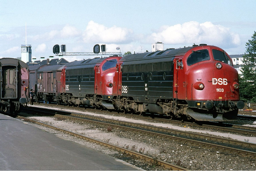 DSB-locs serie MY11 met een goederentrein te Fredericia. Foto: Bert van der Kruk.