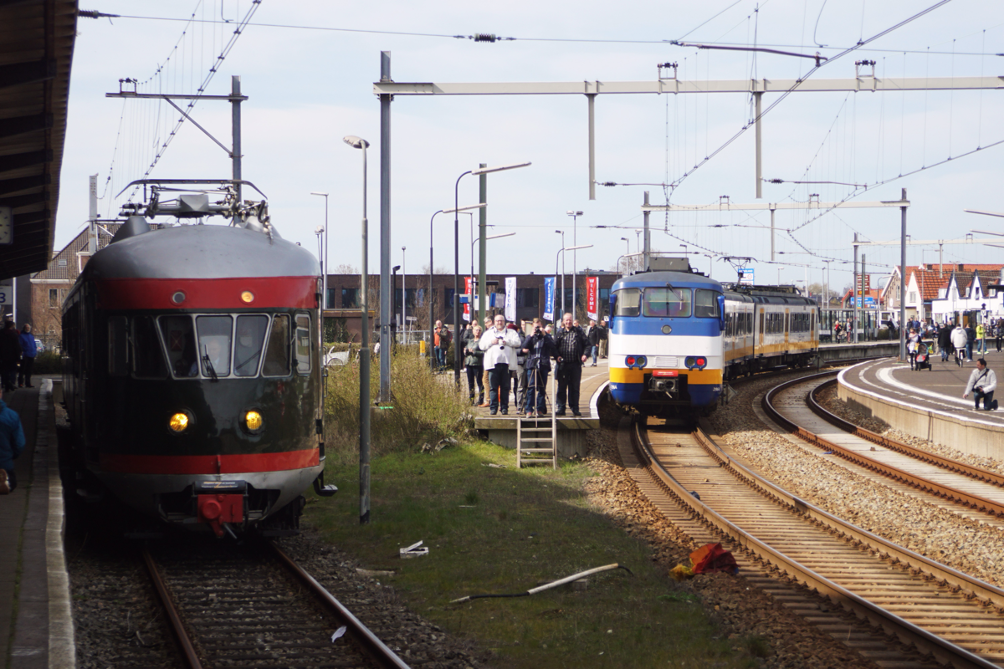 Bij het afscheid van de Hoekse Lijn als NS-spoorlijn, werden o.a. met Mat’46 273 pendelritten gemaakt vanaf Rotterdam C naar Hoek van Holland Haven, 26 maart 2017. Rechts de gebruikelijke dienstregeling SGM. Foto: Bert van Diepen .