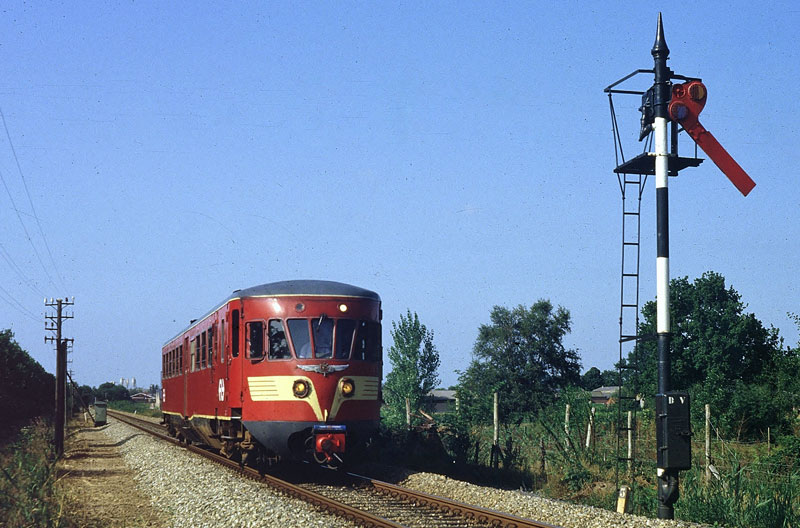In Daarlerveen staat het voorsein van Vroomshoop. Dit voorsein heeft een unieke vorm paal, met spitse punt, een zogenaamde Amerikaanse seinpaal . Op 26 augustus 1983 passeert treinstel 25 als trein 8458 van Mariënberg naar Almelo.