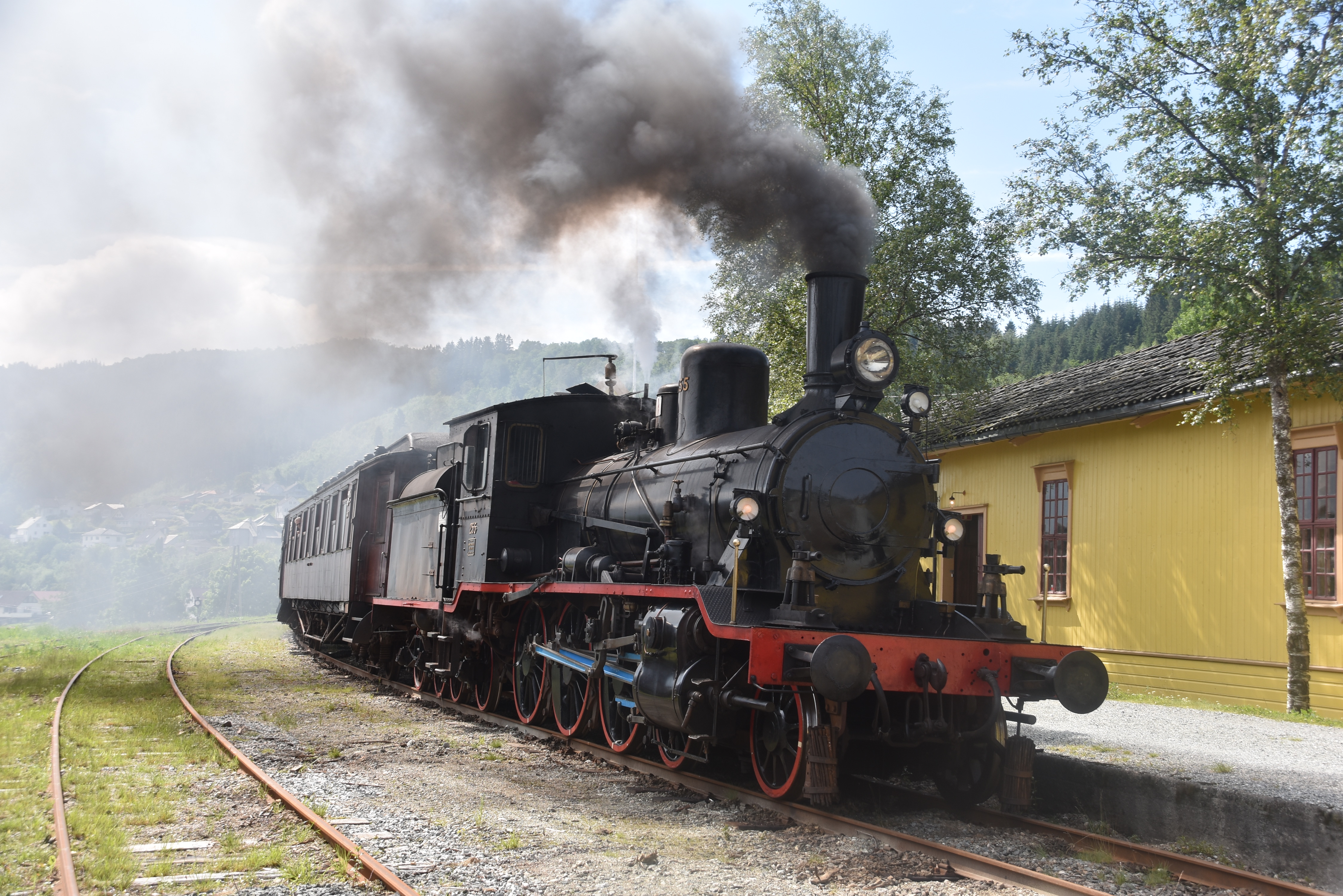 De 2C-stoomloc nr. 255 (bouwjaar 1913) met NVBS-trein tussen Bergen en Voss. Foto: Bram Stelling.