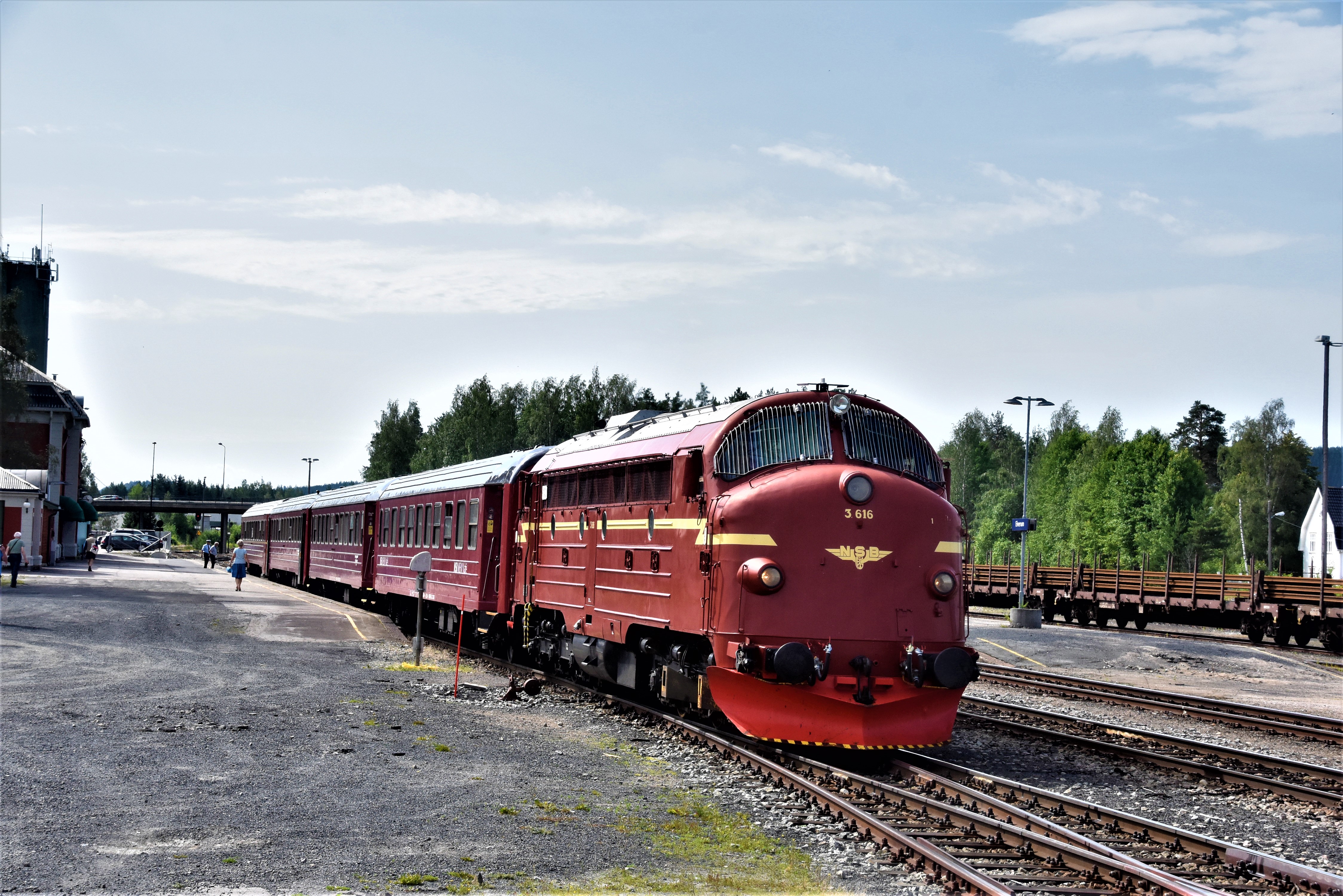 Dieselloc NSB Di3.616 uit 1958 onderweg met de NVBS-trein van Hamar naar Sorumsand. Foto: Bram Stelling.