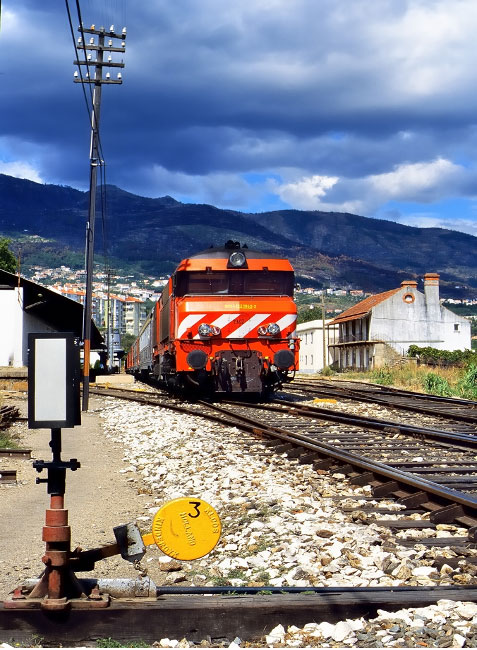 CP-loc 1942 in station Covilha voor vertrek als Rápido IC naar Lisboa Santa Apolónia op 17 september 2000. Foto: Maarten van der Velden