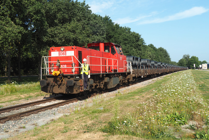 In het bedrijvenpark van Almelo blijft het – hier in 2020 – een komen en gaan van treinen met walsdraad voor Van Merksteijn. Foto: Rudi Liebrand.