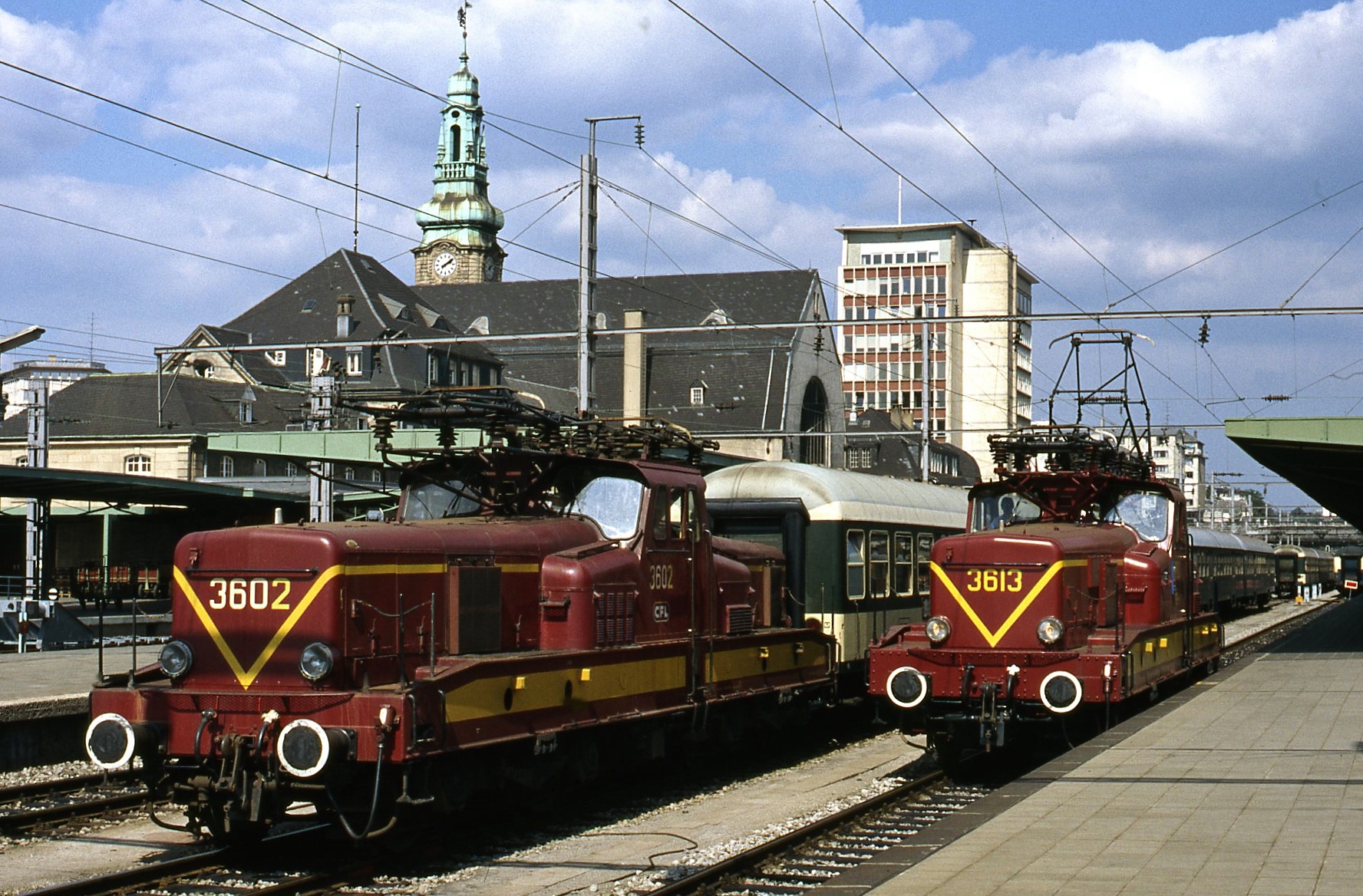 De elektrische tractie bij de Luxemburgse spoorwegen CFL werd verzorgd door de reeks 3600, die nagenoeg identiek is aan de Franse ‘Krokodillen’. Luxemburg, 1989.