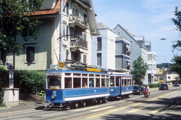 “Elephant” Ce4/4 nr. 321 met bijwagen 687 te Zürich. Foto: Tom Tand.