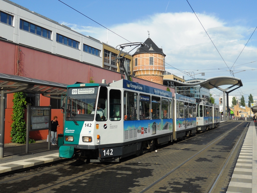 Naast vooral Combino’s was op 5 augustus 2011 het tramtype KT4D van fabrikant Tatra ook nog volop in Potsdam te zien. Foto: Peter Doove.