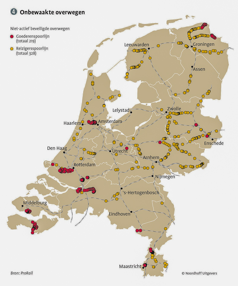 Kaart met onbewaakte overwegen.