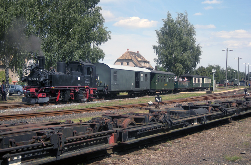 Sachsische IV K Hartmann 3346/192 DR 99 1734 pauzeert te Mügeln. Foto: Peter Doove, 9 augustus 2009.