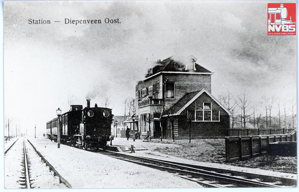 Station Diepenveen Oost kort na de opening van de OLDO ruim een eeuw geleden. Aan het perron een loc uit de SS-serie 500-516 met aan de haak drie rijtuigen. Foto: J.W. Ooiman (SNR).
