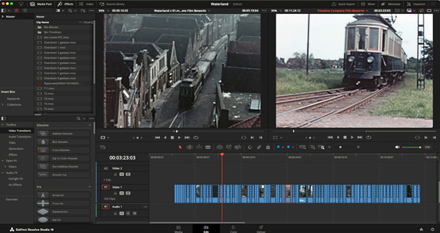 Een van de programma’s waarmee ik werk, is DaVinci Resolve Studio, waarvan hier een schermbeeld te zien is. Maar – wat zien we daar in de montage, is dat niet de Waterlandse tram? Is Ton van zijn geloof afgevallen? Geen zorgen – Stoom Boven Alles! Met het klimmen der jaren wordt een mens milder – en daarom mag er wel eens een lief oud trammetje doorpiepen.