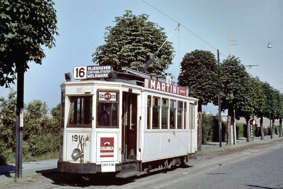Antwerpen, motorwagen 191 op lijn 16 in 1961. Foto: Peter Eradus.