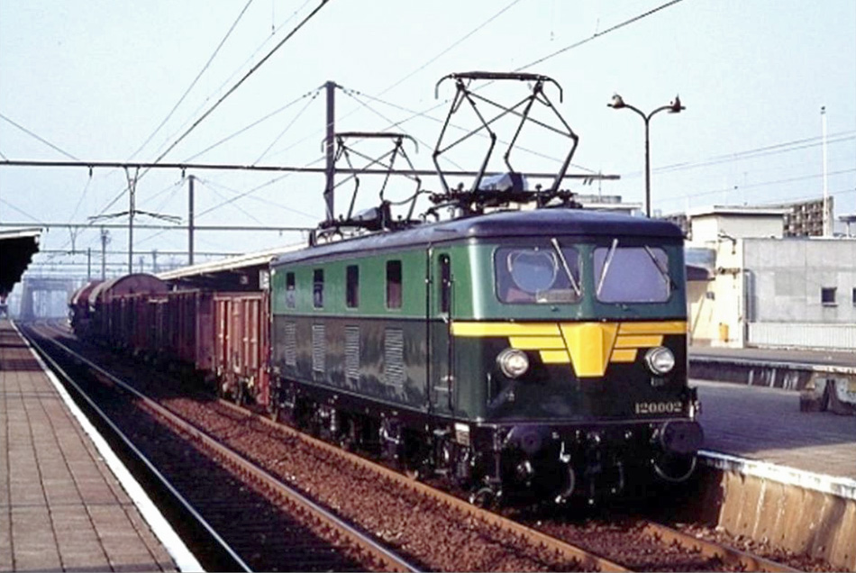 NMBS-locomotief 120002 te Mechelen in 1990. Foto: Peter Eradus.