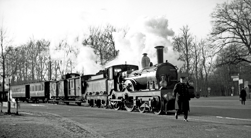 Trein Apeldoorn-Zwolle op het kruispunt bij “de Naald”, omstreeks 1938.