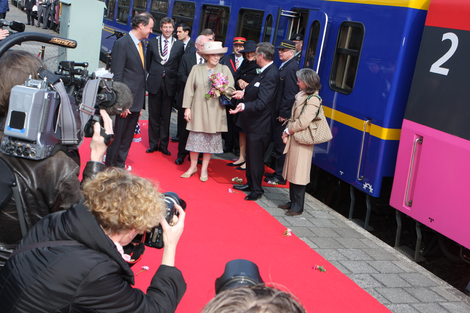 Verschillende spoorwegmaatschappijen spelen op deze koninklijke behoefte in omdat zij vinden dat de waardigheid van hun gasten gewaarborgd moest blijven. In eerste instantie vervoeren zij de koninklijke gasten in luxe rijtuigen die uit de gewone reizigersdienst komen, later worden voor dit doel speciale salonrijtuigen en/of treinen gebouwd. Deze blijven in Nederland eigendom van de betreffende spoorwegmaatschappij doch worden uitsluitend ingezet voor hun koninklijke, keizerlijke gasten. De inrichting van deze rijtuigen geschiedt in nauw overleg met de verschillende koninklijke gasten. In deze presentatie krijgt u een beeld van het nog bestaande koninklijk materieel en bezoeken we de koninklijke wachtkamers van Baarn, Den Haag SS, Den Haag HS en Amsterdam Centraal.