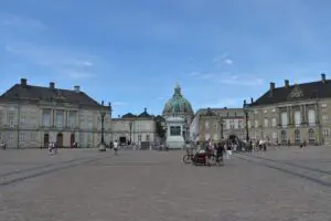 Het koninklijke paleis Amalienborg in Kopenhagen, 11 juli 2022. Foto Karel Koploper