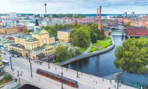 Een droneview van het centrum van Tampere. Foto Laura Vanzo (visittampere.fi)