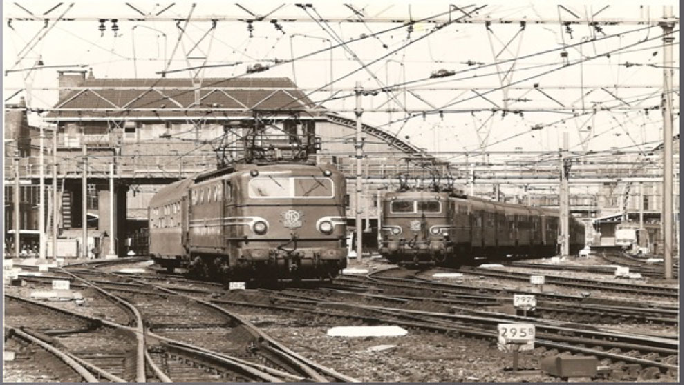 Tientallen van zijn zwartwit foto’s, allemaal gemaakt in de periode 1965 – 1985, worden via de beamer vertoond door Peter van der Vlist. We kijken op diverse stations en emplacementen naar het vele dat daar inmiddels is verdwenen of in ieder geval geheel veranderd. Verdwenen zijn bijvoorbeeld elektrisch materieeltypes als mat’36, ’40, ’46 en ’54. Weliswaar verdwenen van het nationale spoorwegnet, maar in ons Spoorwegmuseum zijn vertegenwoordigers bewaard gebleven. Helaas niet het mat ’40, dat dan weer wel.