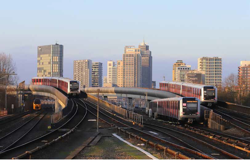 De splitsing bij de Van der Madeweg met drie gekoppelde driewagenstellen M7: tweemaal lijn 50 op de fly-overs van en naar de Zuidtak en lijn 53 ertussenin. De inzet van lange treinen op de minder drukke lijn 53 is een gevolg van de exploitatieve koppeling aan lijn 54 bij CS. | 15-12-2025