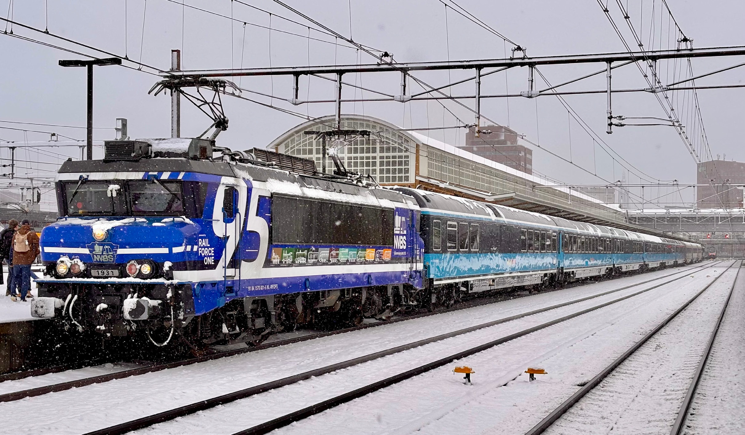 In Amersfoort Centraal is de 1831 van RFO (alias NVBS 1931) tegen de trein geplaatst. Ze loopt tijdens het eerste deel van de Oliebollenrit tot Zwolle achterop mee. TCS 101002 verzorgt tot daar de trekkracht. De trein is samengesteld uit zes rijtuigen van HappyTrain Fleet Services BV en drie NMBS I11-rijtuigen. | 03-01-2026