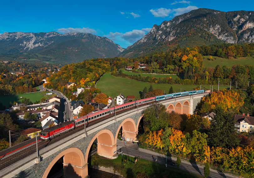 Wie op zijn reis van Wenen naar Graz voor de trein kiest, passeert tussen Gloggnitz en Mürzzuschlag de Semmering. Deze bergspoorlijn is de oudste normaalsporige verbinding door de Alpen, geopend in 1854. Ze maakt deel uit van de Oostenrijkse Südbahn en is nog steeds van groot belang voor het reizigers- en goederenvervoer tussen Wenen, Graz en de Adriatische Zee. Sinds 1998 staat de Semmeringbahn als eerste spoorlijn ooit op de werelderfgoedlijst van Unesco.