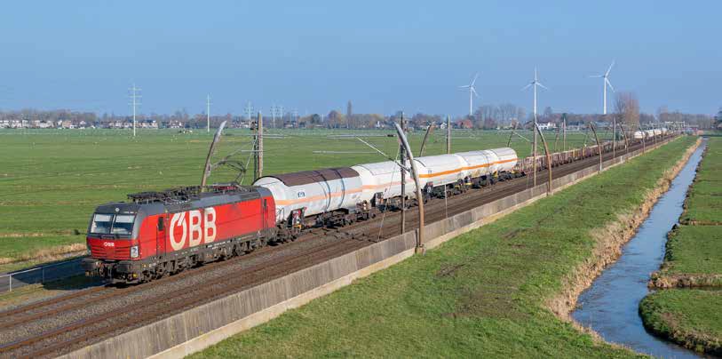 Het Oostenrijkse Rail Cargo Carrier rijdt nog tot komende zomer alle bonte treinen tussen Linz en Antwerpen via Rheinkamp en Kijfhoek. Vectron 1293 194 met een dergelijke trein op de Betuweroute bij Giessendam. | 04-03-2026