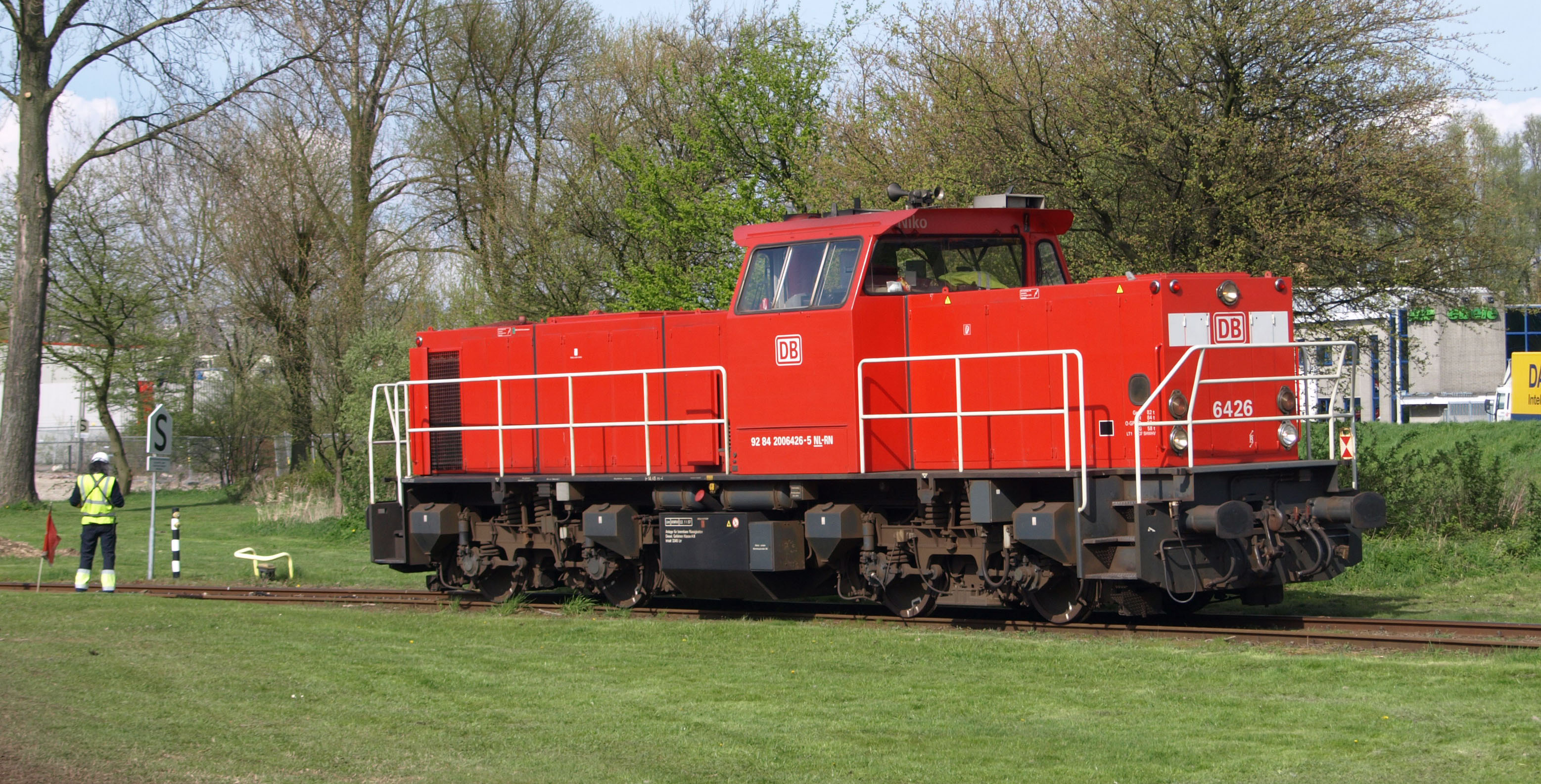 Loc 6426 van DB, oorspronkelijk van NS. De loc wordt radiografisch bediend door de man links op de foto. Foto: Gerrit Nieuwenhuis.