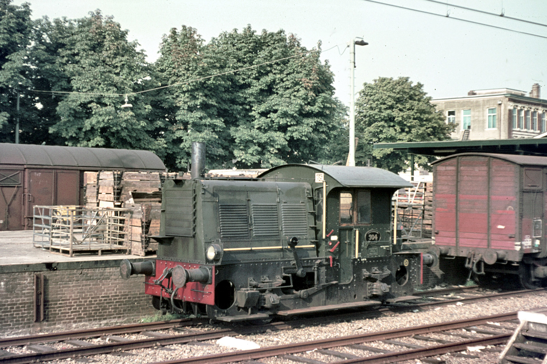 Hilversum, 14 september 1969. Locomotor 304 bij de losplaats. Foto: Nico Spilt.