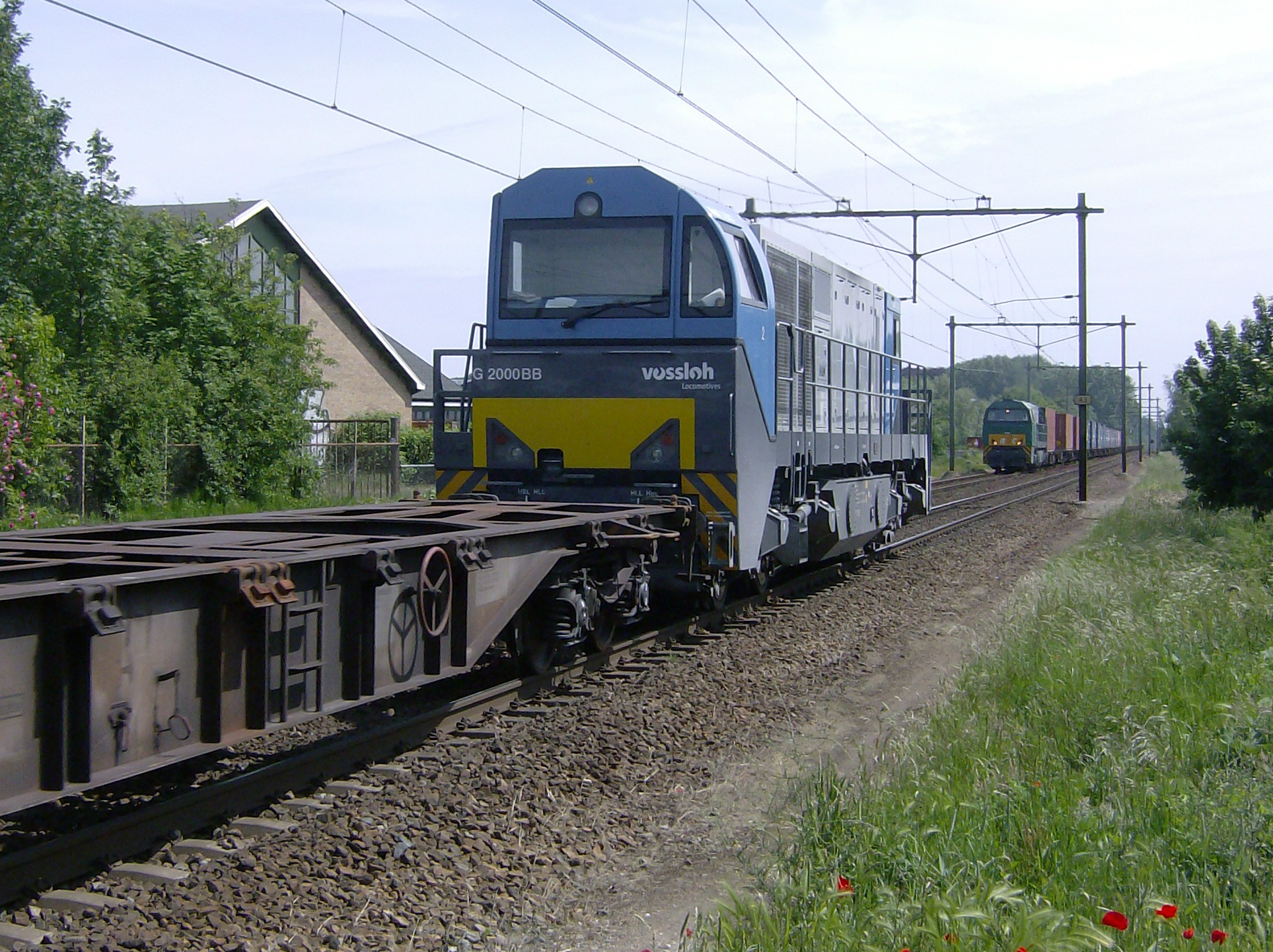 Geldermalsen, 3 mei 2007. Volvo-trein op weg naar België, getrokken door locs 7782 en 7771. Foto: Gerrit Nieuwenhuis.