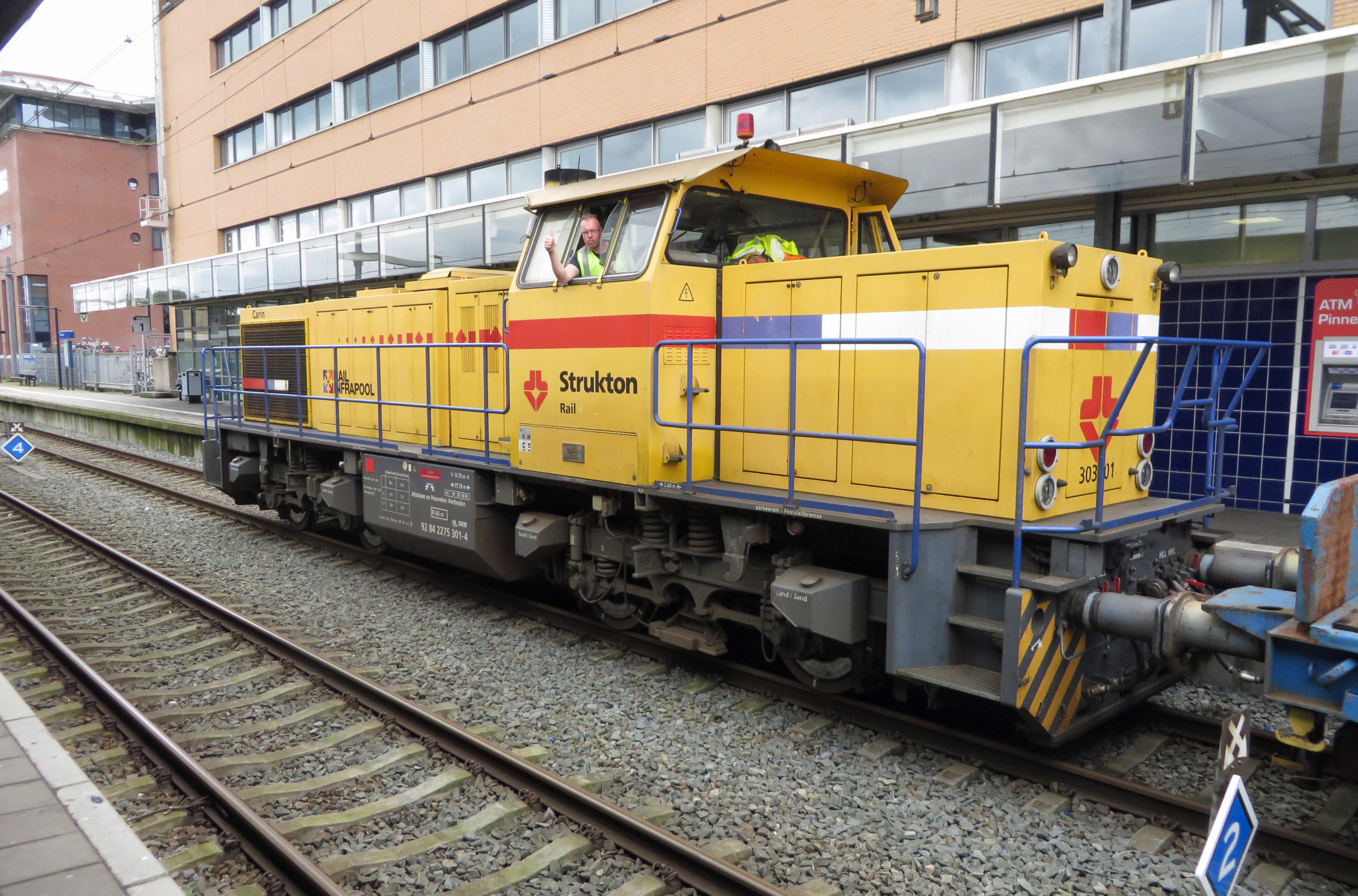 Hilversum, 3 augustus 2016. Strukton-loc 303001 “Carin”, een G1206. Foto: Nico Spilt.
