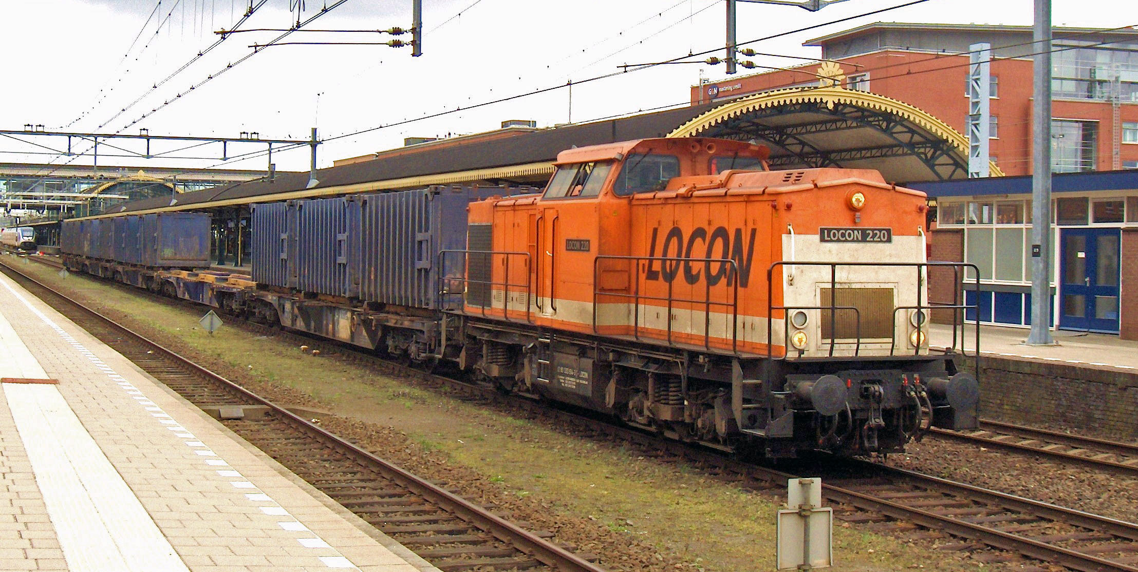 Locomotief 220 van Locon met een vuilnistrein in Den Bosch, 30 maart 2012. Dit is een voormalige Oost-Duitse V100. Foto: Gerrit Nieuwenhuis.
