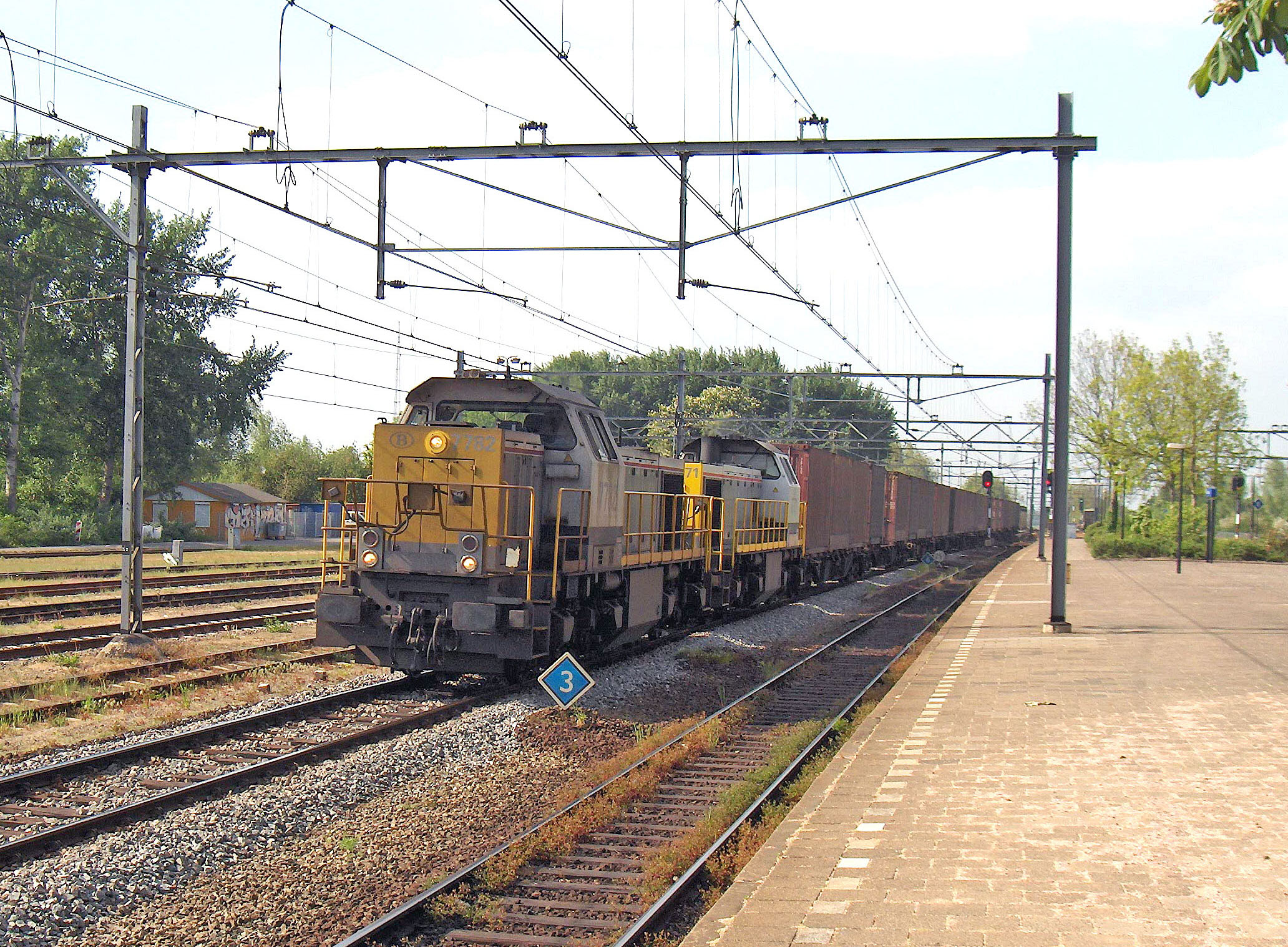 Geldermalsen, 3 mei 2007. Volvo-trein op weg naar België, getrokken door locs 7782 en 7771. Foto: Gerrit Nieuwenhuis.