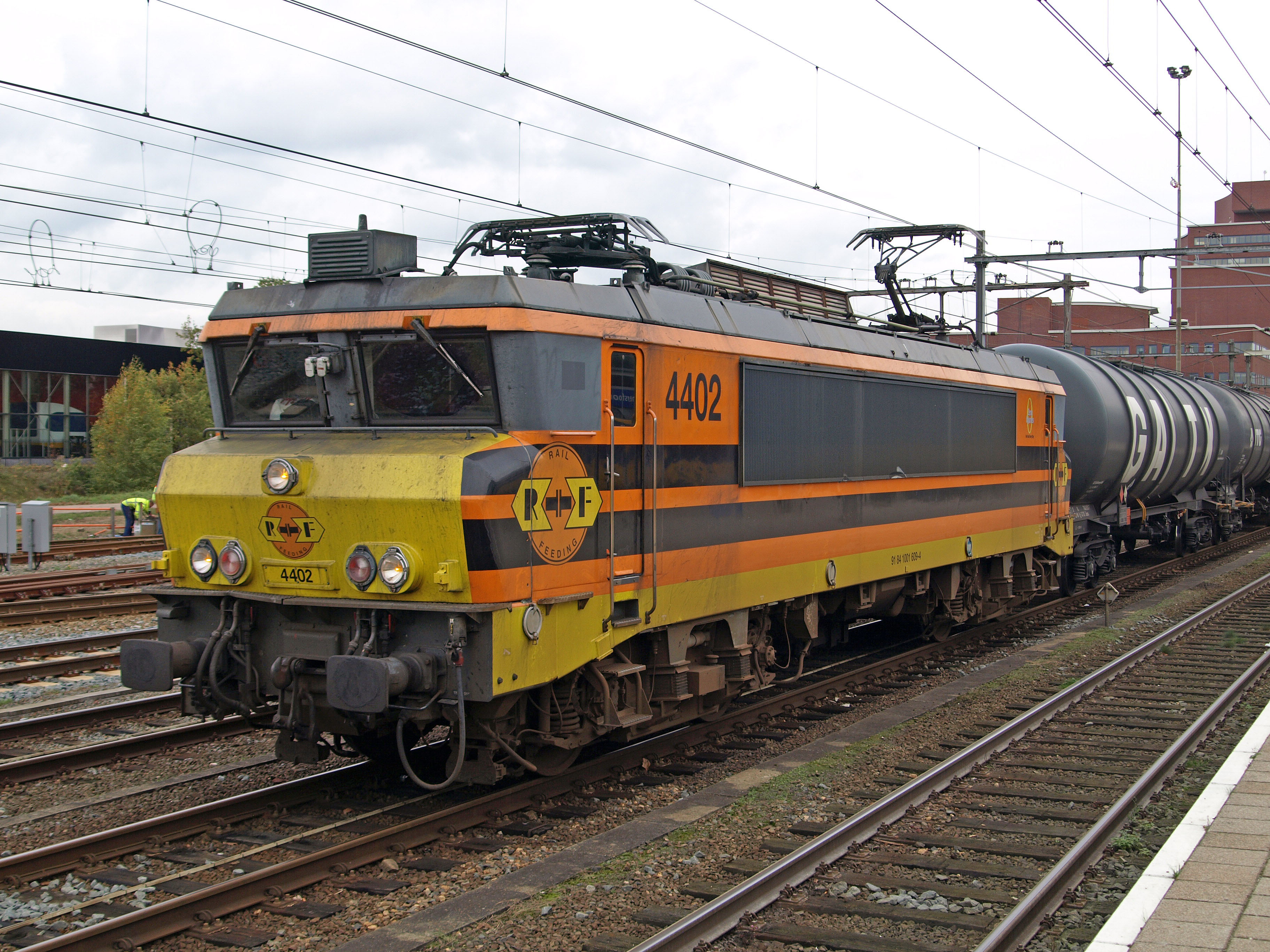 Op 26 oktober 2017 brengt locomotief 4402 (ex NS 1609) van RRF een ketelwagentrein binnen in Amersfoort. Foto: Gerrit Nieuwenhuis.