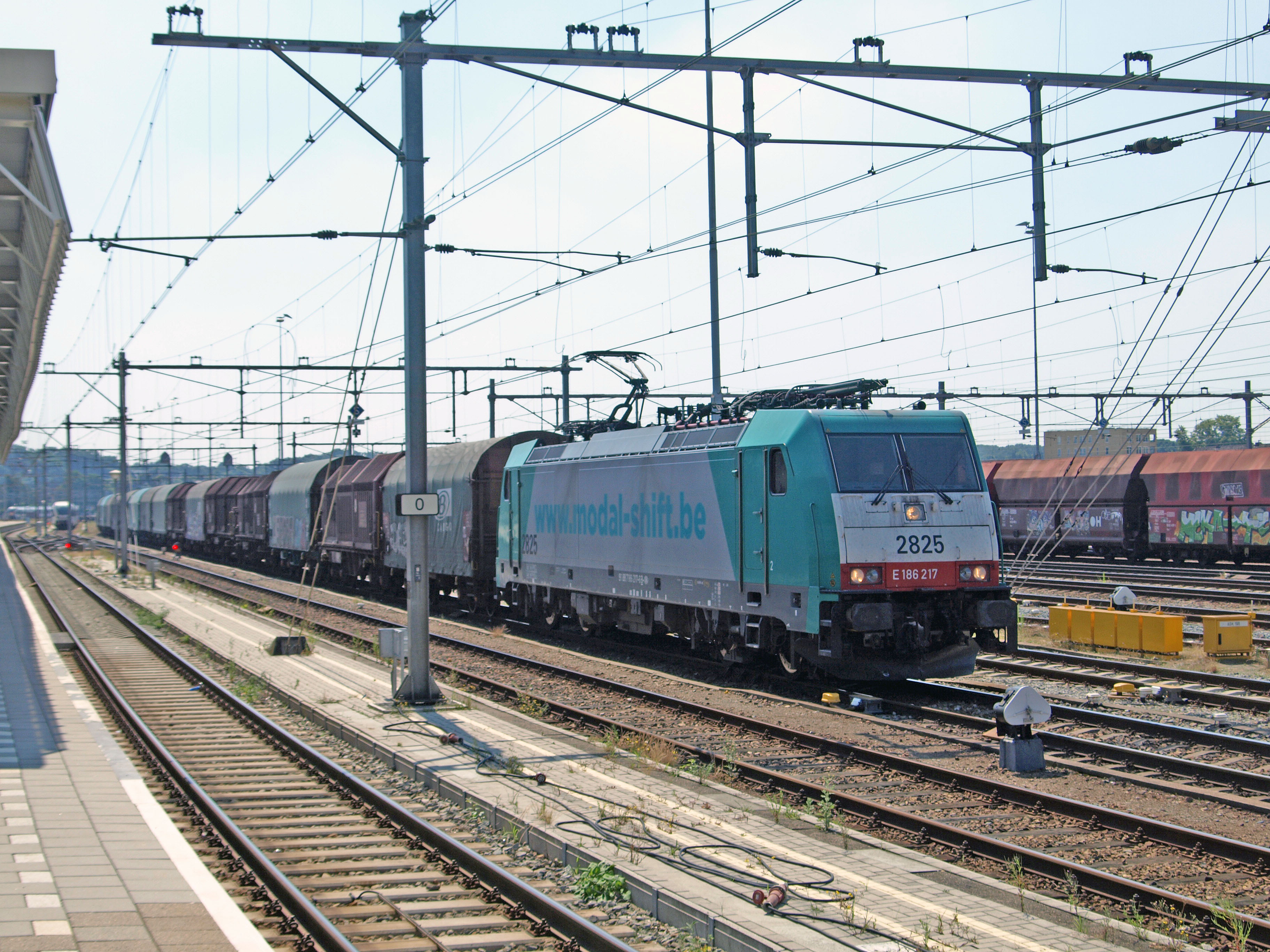 Locomotief 2825 van B Cargo, tegenwoordig Lineas, is vanuit Duitsland in Venlo aangekomen op 17 juli 2016. Foto: Gerrit Nieuwenhuis.