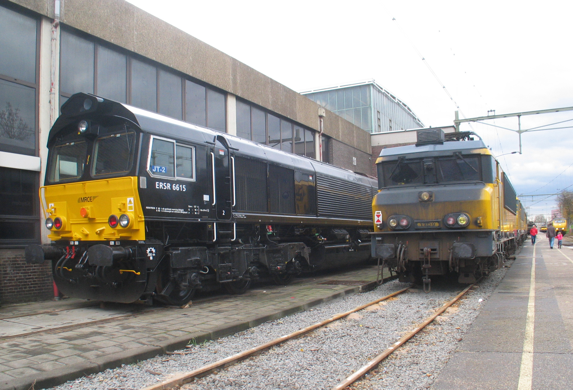 Werkplaats Tilburg, 25 november 2006. Een loc van leasemaatschappij MRCE wordt gereedgemaakt om dienst te gaan doen bij ERS Railways. Foto: Nico Spilt.