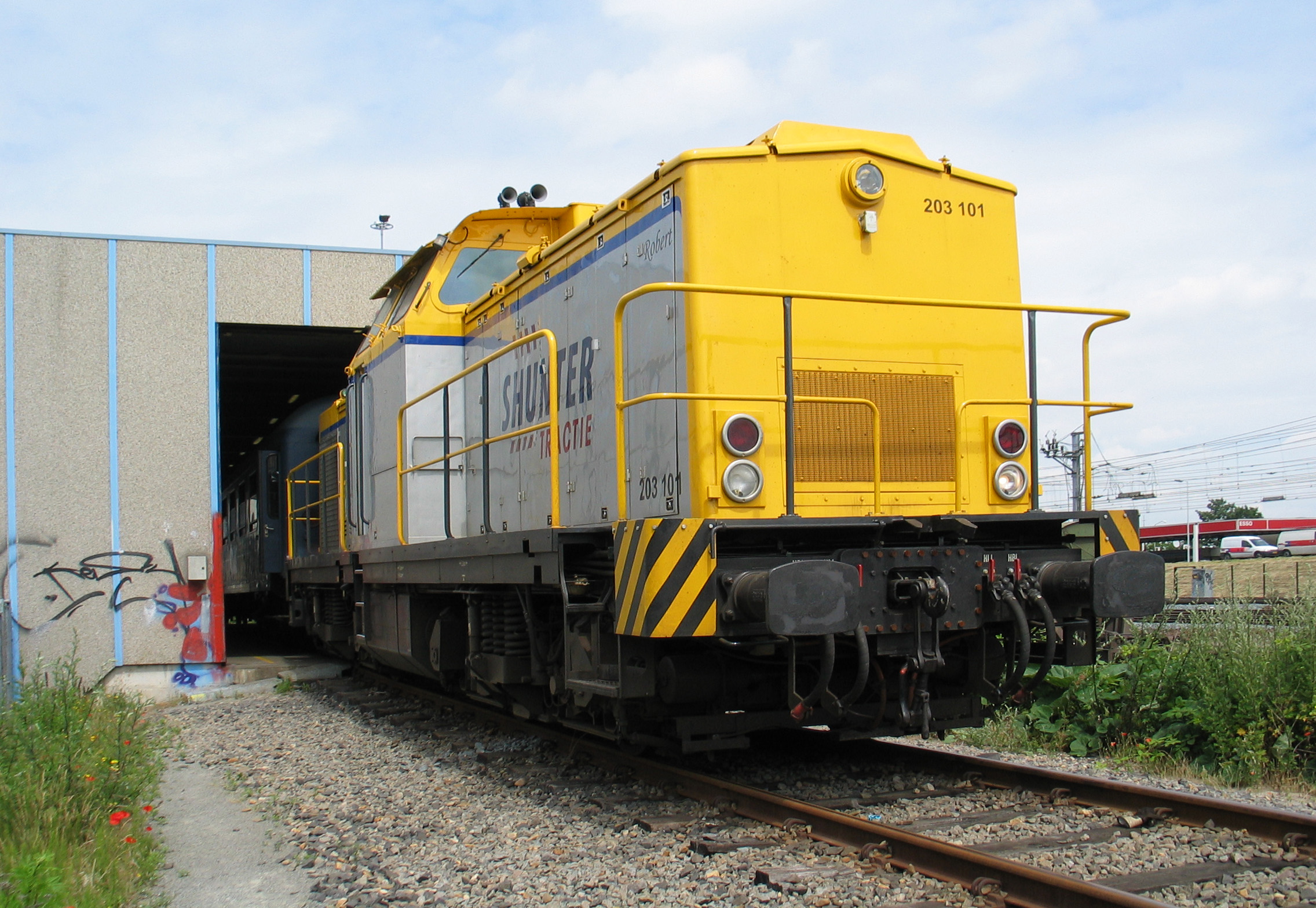 Rotterdam, 21 juni 2008. Loc 203 101 voor de werkplaats van Shunter. Foto: Nico Spilt.
