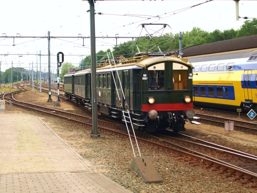 Het spoorwegmuseum heeft nog een zogenaamd blokkendoosstel rijvaardig. Op 14 mei 2011 rijdt dit stel Den Bosch binnen op weg naar Goes.