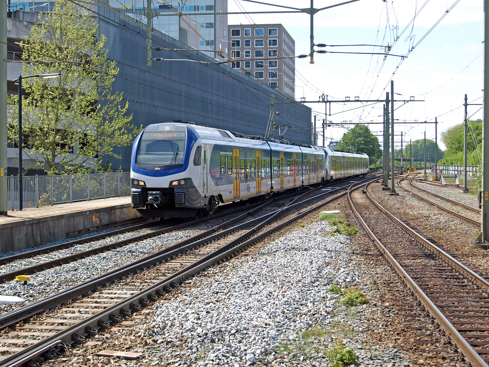De Flirt-treinstellen van NS zijn vooral in het zuiden aan te treffen. Op 2 mei 2018 zijn de 2203 en 2509 op weg naar Arnhem en rijden Tilburg binnen. Foto: Gerrit Nieuwenhuis.