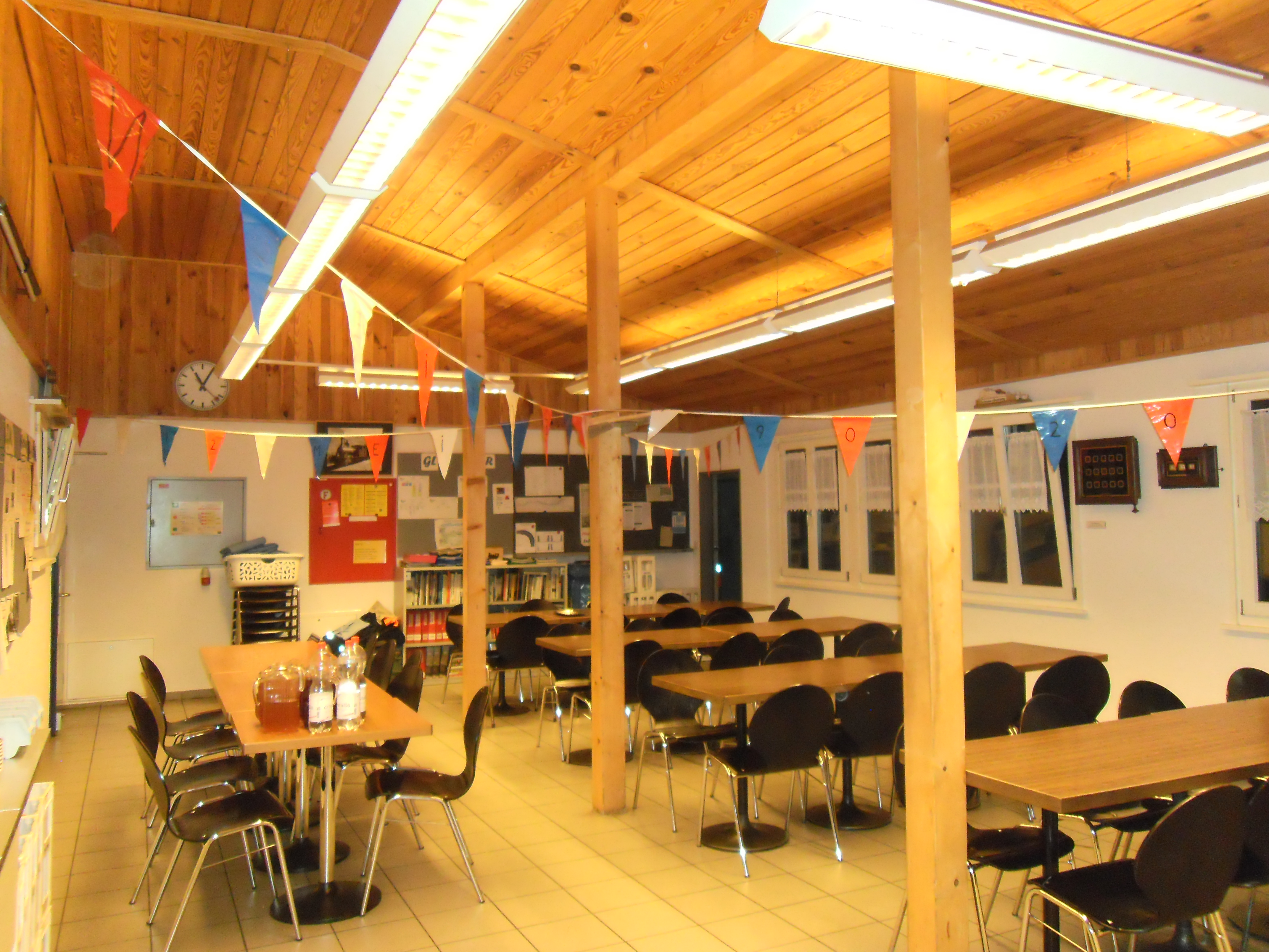 Kantine Realp, 25 jaar Nederlandse sectie, augustus 2015, foto Joanne Scheidemans. Nu is ‘depot’ Realp de plek waar de vrijwilligers slapen en eten. Deze kantine was op de foto versierd omdat de Nederlandse sectie op die dag 25 jaar bestond.