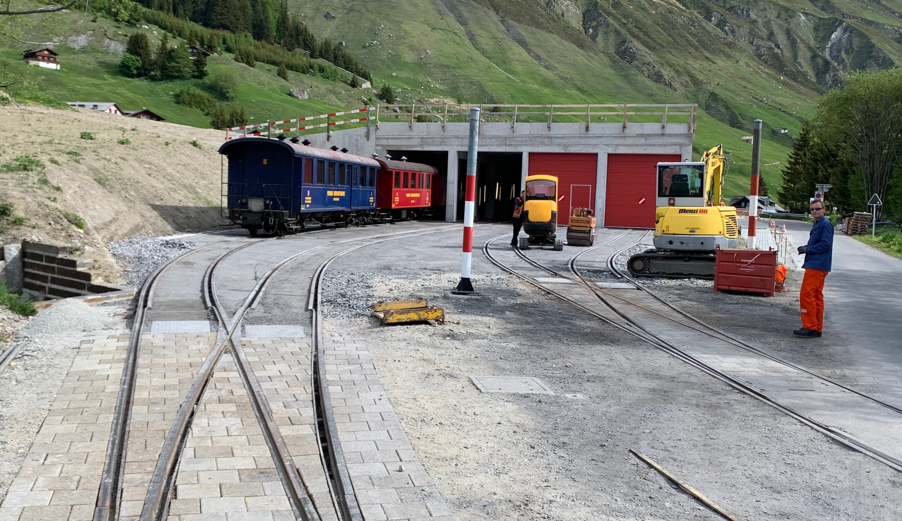 Wagenremise Realp, mei 2020, foto Reto Brehm. Als laatste uitbreiding is eind 2019 de Wagenremise Realp in gebruik genomen. Eindelijk kunnen alle echt waardevolle rijtuigen droog overwinteren.