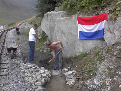 De ‘Holländische Strecke’, 28 augustus 2009, foto Collectie VFB-NL. Het traject Muttbach-Belvedère – Gletsch heeft voor de Nederlanders de bijnaam ‘Holländische Strecke’. De reden is dat bij de wederopbouw de Nederlandse vrijwilligers hier heel veel goed werk hebben verricht.